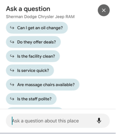 Instead of scrolling through questions, a user can simply ask, “Does this dealership have a kids’ play area in the service lounge?” or “What are people saying about the trade-in process here?”